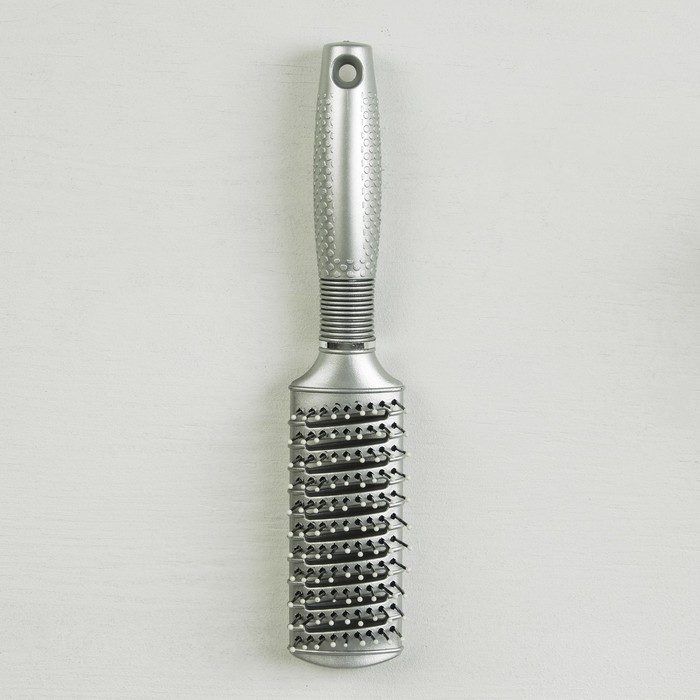 Расчёска массажная "Лёд", прямоугольная, вентилируемая, цвет серебряный