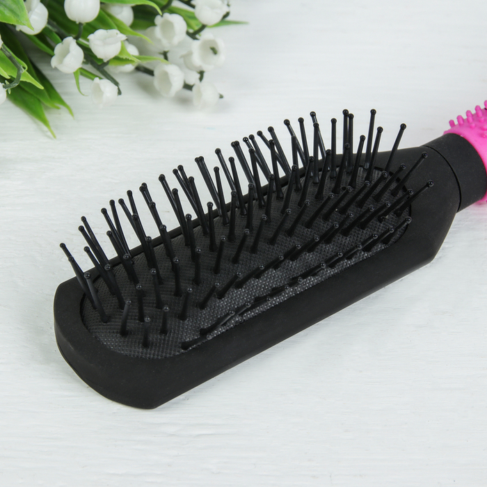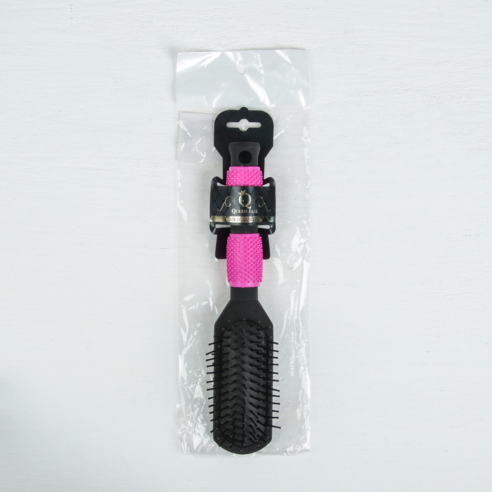 Расчёска массажная с прорезиненной ручкой, прямоугольная, цвет чёрный/розовый