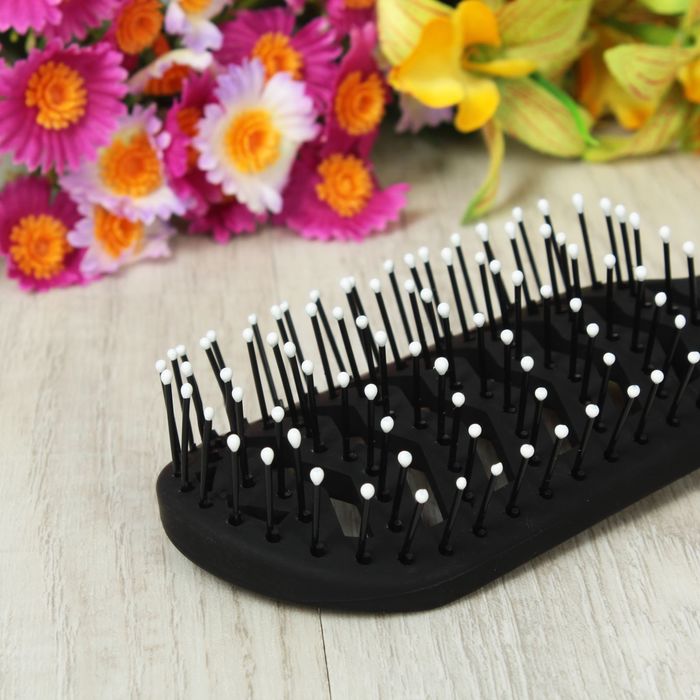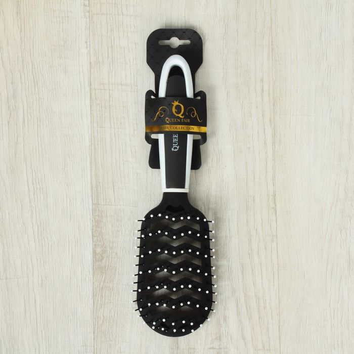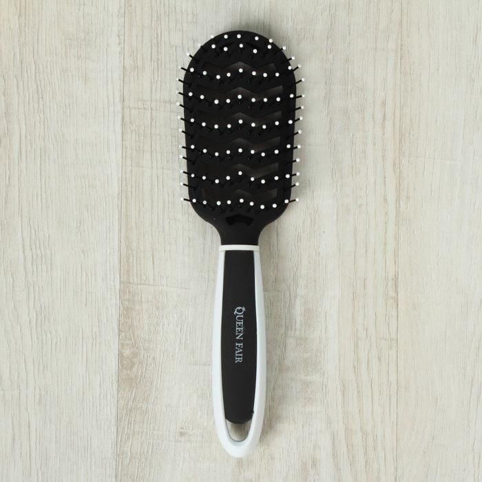 Расчёска массажная с прорезиненной ручкой, вентилируемая, овальная, цвет чёрный/белый