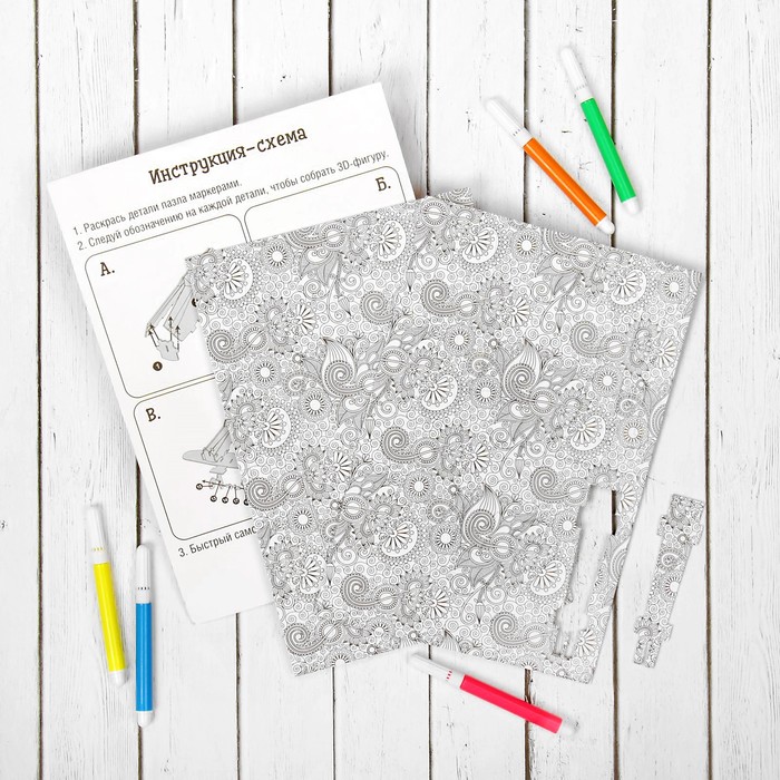 Раскраска для вдохновения - 3D пазл "Самолет" + 5 фломастеров