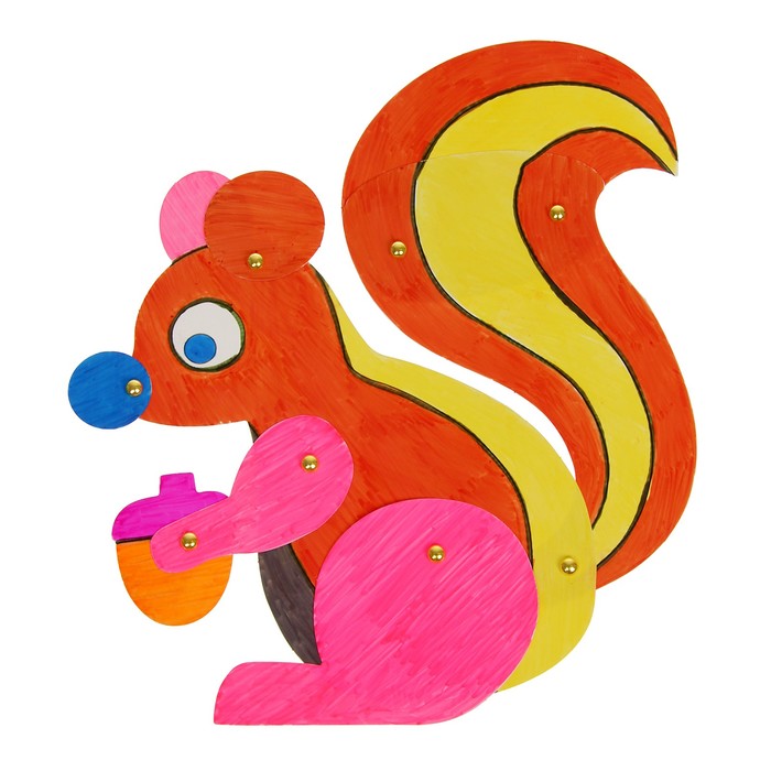 Раскрасьте элементы любимыми цветами или повторите по образцу, затем выдавите их из основания и соедините между собой креплениями.