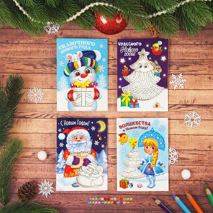 Раскраска-открытка новогодняя "Чудесного Нового года!", МИКС