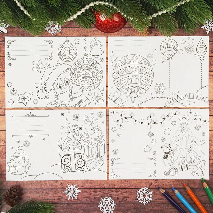 Посвятите время творчеству в компании детей в преддверии волшебного праздника — раскрасьте открытки яркими цветами! Используйте карандаши, фломастеры или краски, выбирайте и смешивайте оттенки — фантазия ничем не ограничена. Создавайте собственные узоры и не забудьте добавить стразы на обложку.