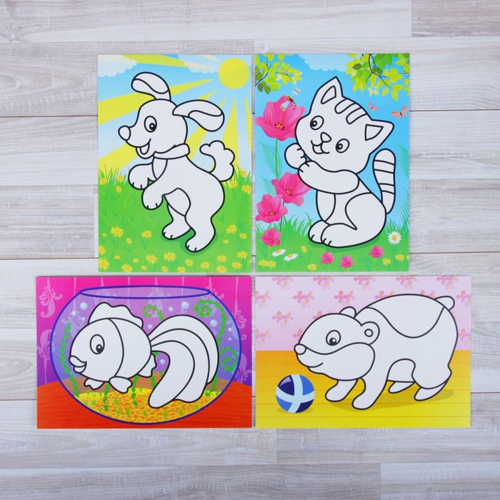 Раскраска пластилином "Домашние любимцы" 4 шт. А4, 3+
