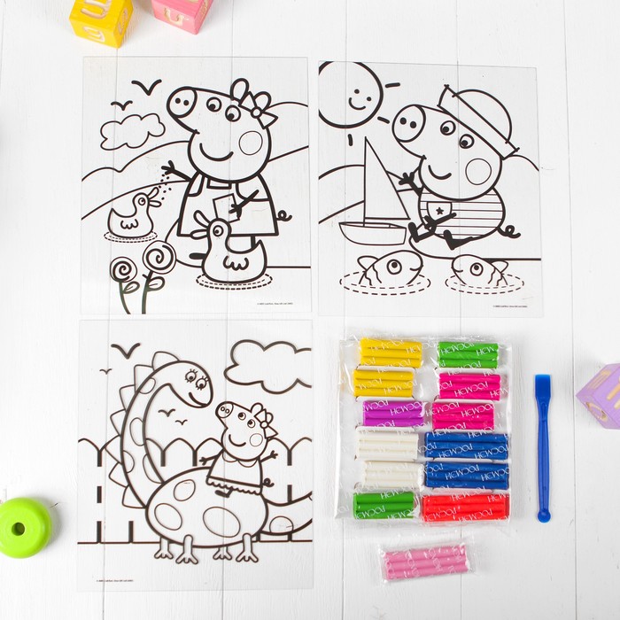 Раскраска пластилином "Пеппа и Джордж", 3 картинки