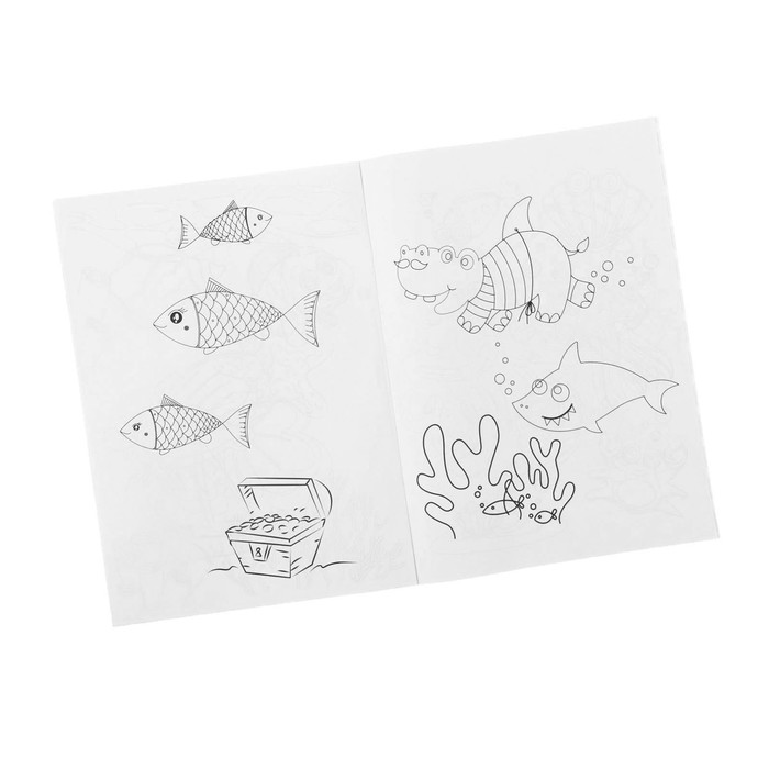 Раскраска с наклейками "Морские обитатели" 8 листов, 2 листа наклеек
