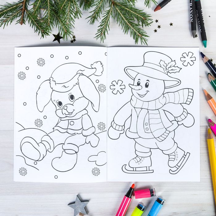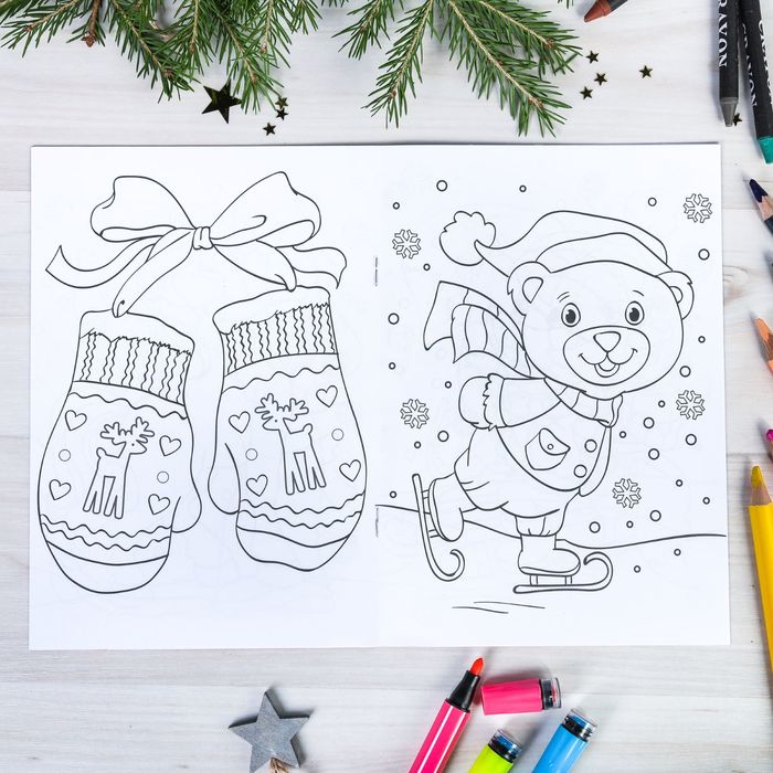 Раскраски новогодние забавы "Мишка на коньках" 14,8 Х 21 см 16 страниц