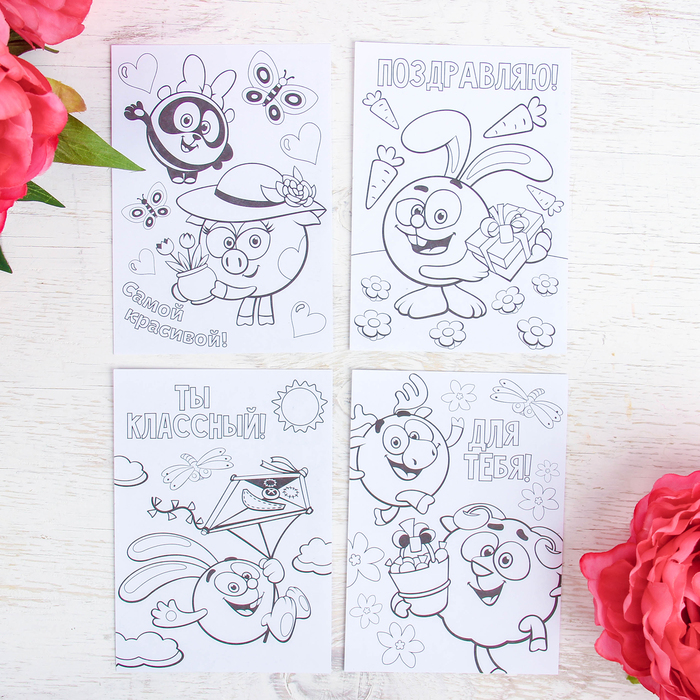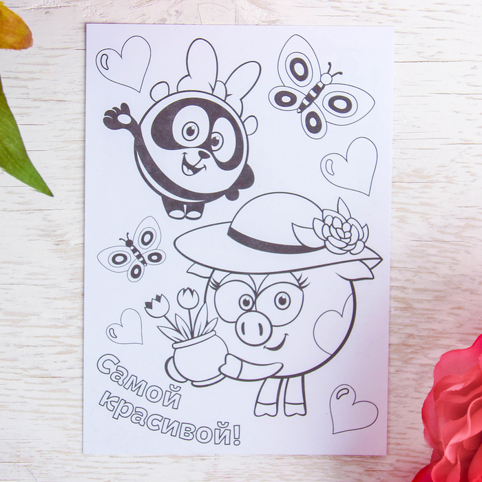Раскраски-открытки, "Самой красивой" СМЕШАРИКИ