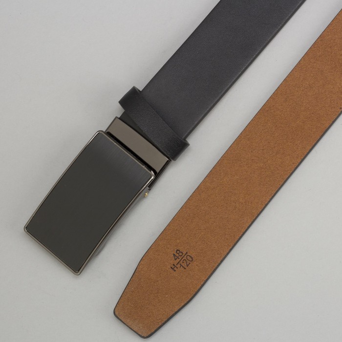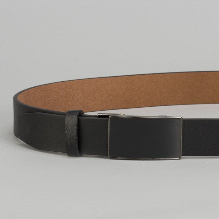 Ремень мужской, гладкий, пряжка металл, цвет чёрный