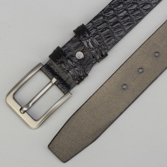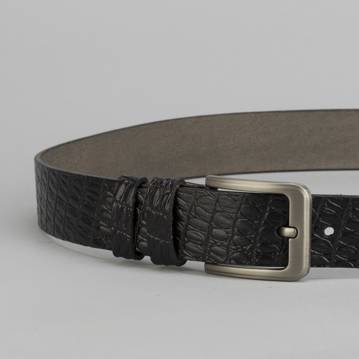 Ремень мужской, кайман, пряжка тёмный металл, цвет чёрный