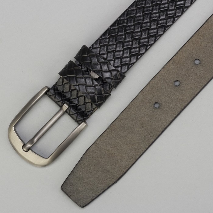 Ремень мужской, плетёнка, пряжка тёмный металл, цвет чёрный