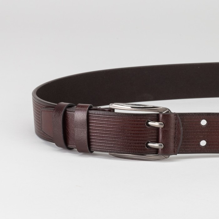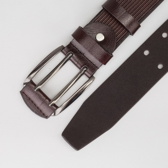 Ремень мужской, пряжка тёмный металл, 2 прокола, ширина - 4 см, цвет кофе — выбор стильных людей. Вещь изготовлена из качественных и безопасных материалов, а над дизайном работала команда настоящих профессионалов.