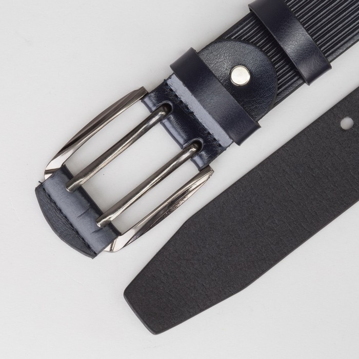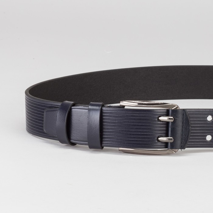 Ремень мужской, пряжка тёмный металл, 2 прокола, ширина - 4 см, цвет синий — выбор стильных людей. Вещь изготовлена из качественных и безопасных материалов, а над дизайном работала команда настоящих профессионалов.