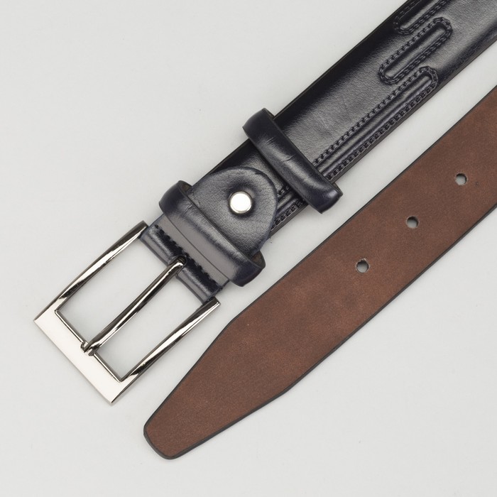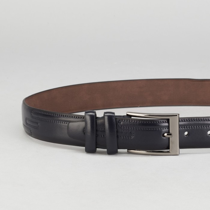 Ремень мужской, пряжка тёмный металл, ширина - 3,5 см, цвет синий
