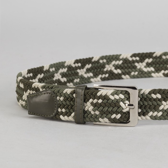 Ремень мужской, резинка, пряжка металл, ширина - 3,5 см, цвет зелёный/хаки/бежевый