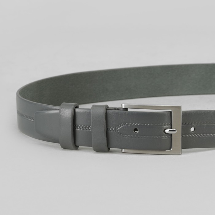 Ремень мужской, ширина 3,4 см, с рисунком, винт, пряжка металл, цвет серый — выбор стильных людей. Вещь изготовлена из качественных и безопасных материалов, а над дизайном работала команда настоящих профессионалов.