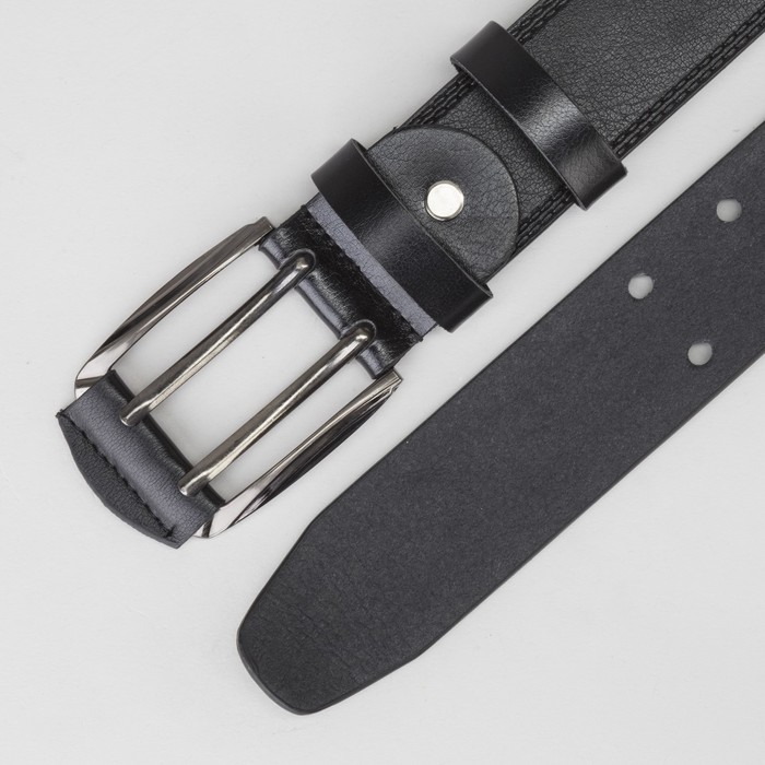 Ремень мужской, винт, пряжка под тёмный металл, 2 прокола, цвет чёрный