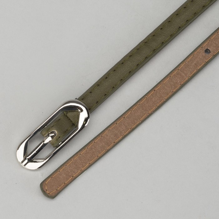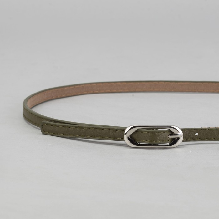Ремень женский, 2 строчки, гладкий, пряжка - металл, ширина - 1см, зелёный