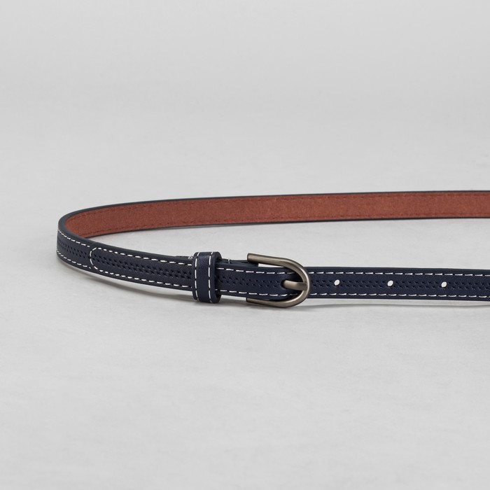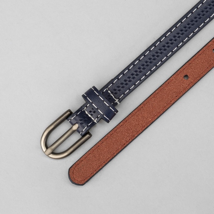 Ремень женский "Перфорация", пряжка под тёмный металл, ширина - 1,5см, синий