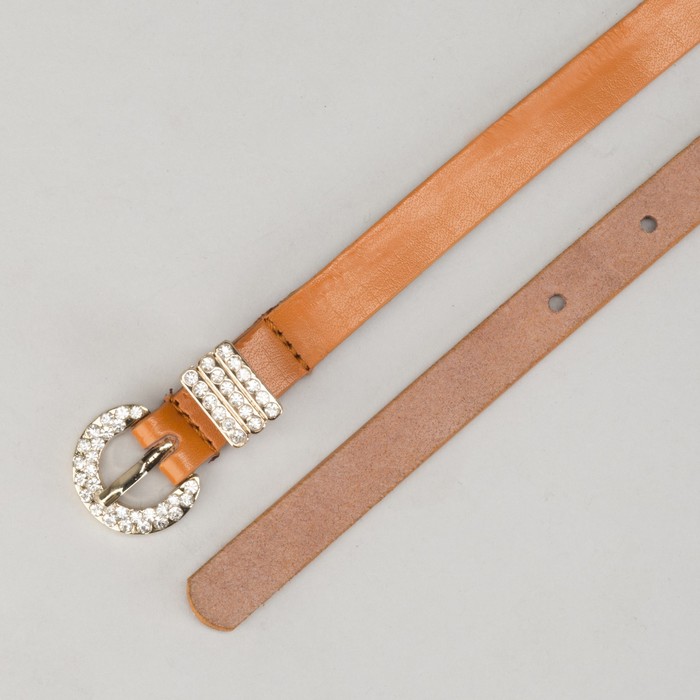 Ремень женский "Шик" гладкий, пряжка и хомут под золото, стразы, ширина - 1,5см, оранжевый