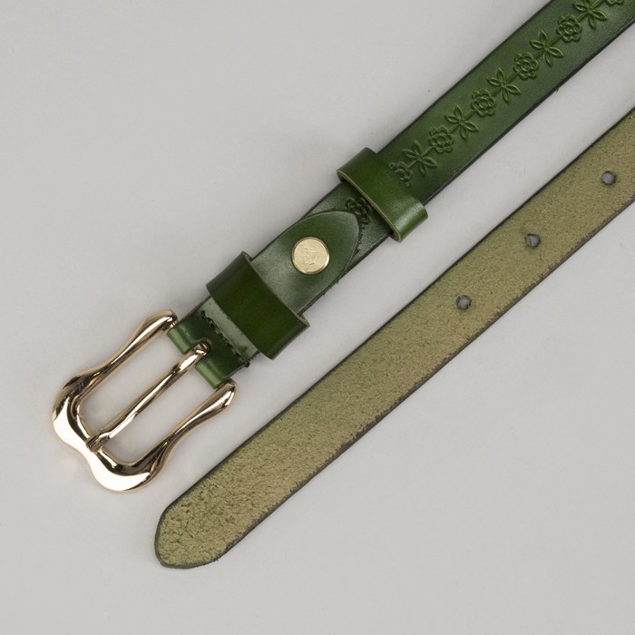 Ремень женский, ширина 1,8 см, цветы, винт, пряжка золото, цвет зелёный