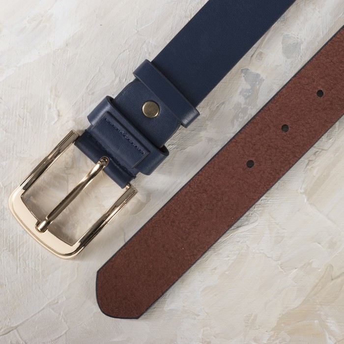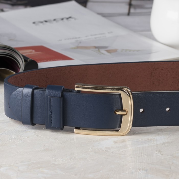 Ремень женский, винт, пряжка под золото, ширина - 3,5см, цвет синий