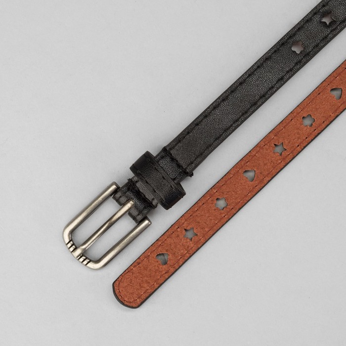 Ремень женский "Звёзды и сердца", пряжка под тёмный металл, ширина - 1,5см, чёрный