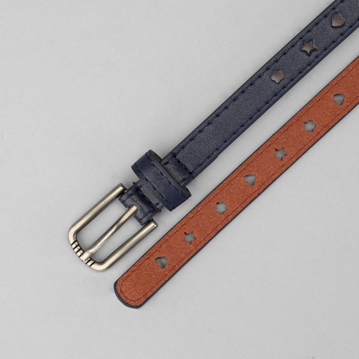 Ремень женский "Звёзды и сердца", пряжка под тёмный металл, ширина - 1,5см, синий