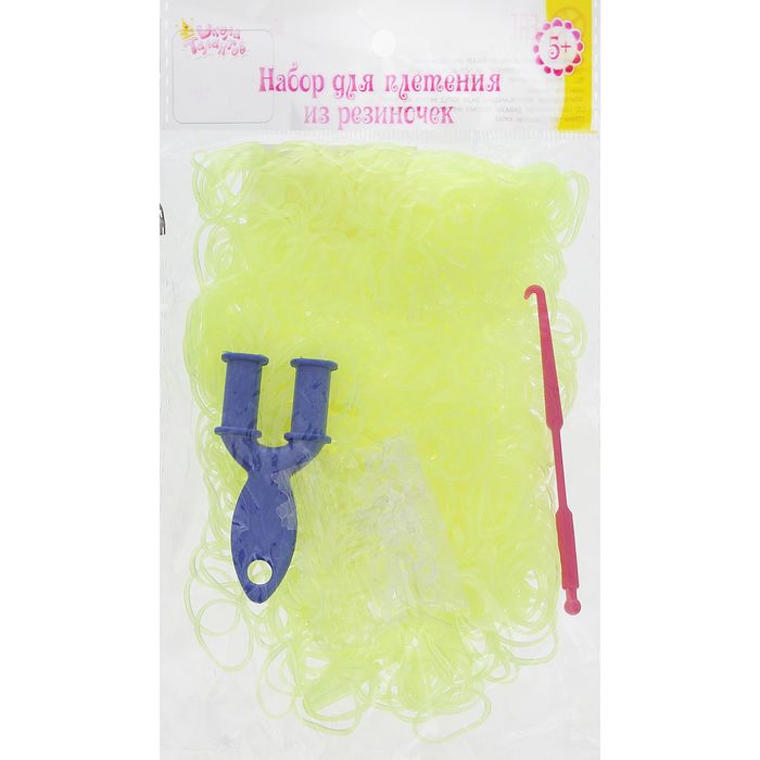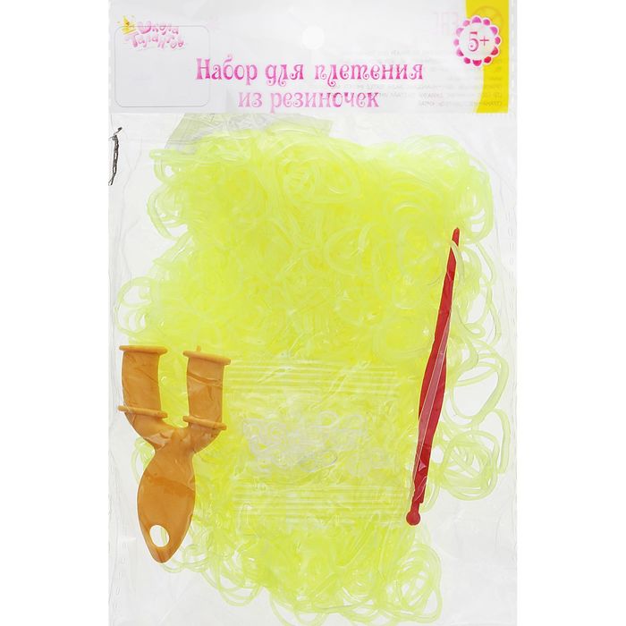 Резиночки для плетения жёлтые, светящиеся в темноте жёлтые, набор 1000 шт., крючок, крепления, пяльцы