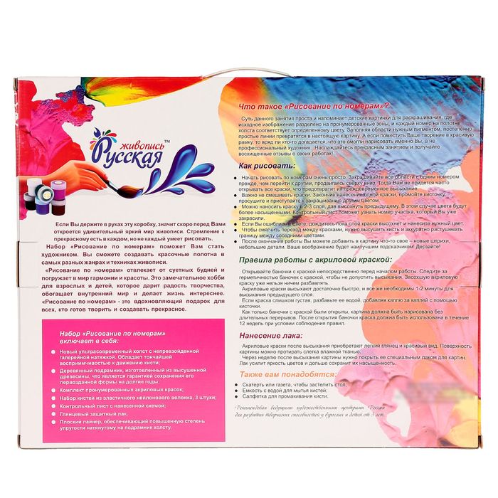 - комплект пронумерованных акриловых красок;