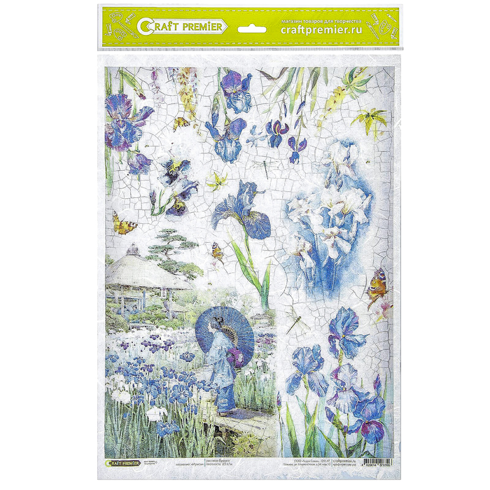 Рисовая бумага для декупажа "Ирисы" 28,2х38,4 см, 25г/м