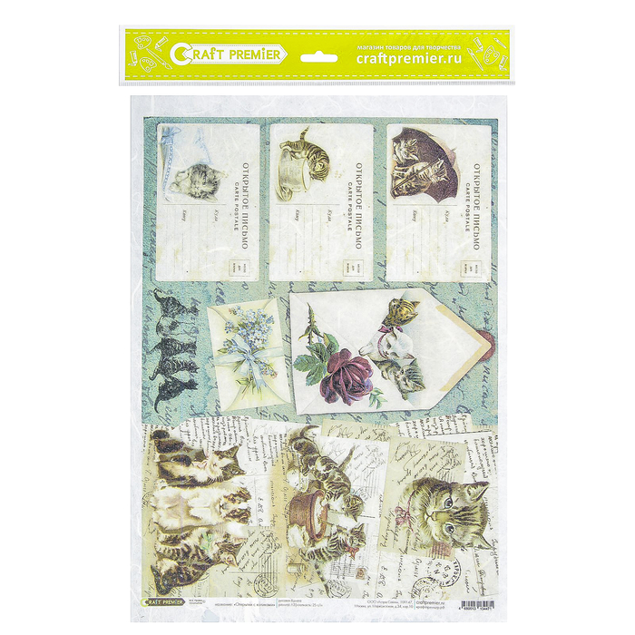 Рисовая бумага для декупажа "Открытки с котиками" 28,2х38,4 см, 25г/м