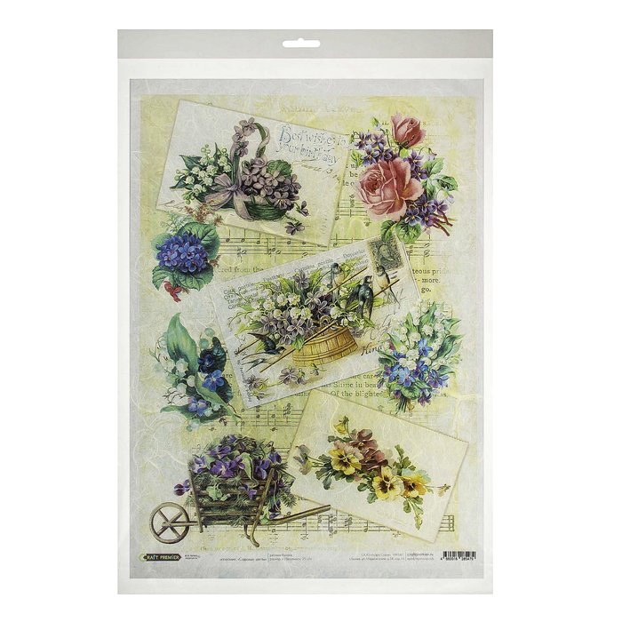 Рисовая бумага для декупажа "Садовые цветы" формат A3, 25г/м