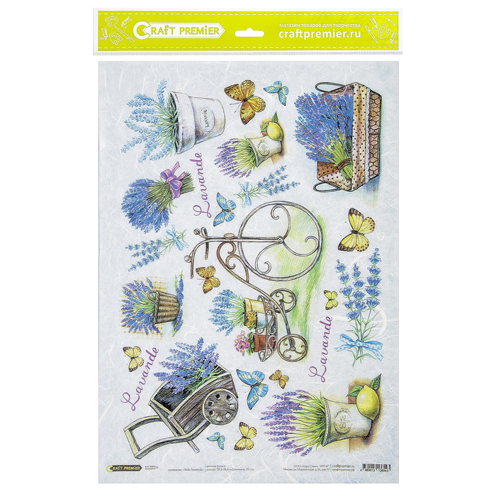 Рисовая бумага для декупажа "Вело. Лаванда" 28,2х38,4 см 25г/м