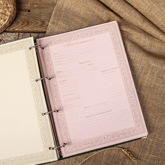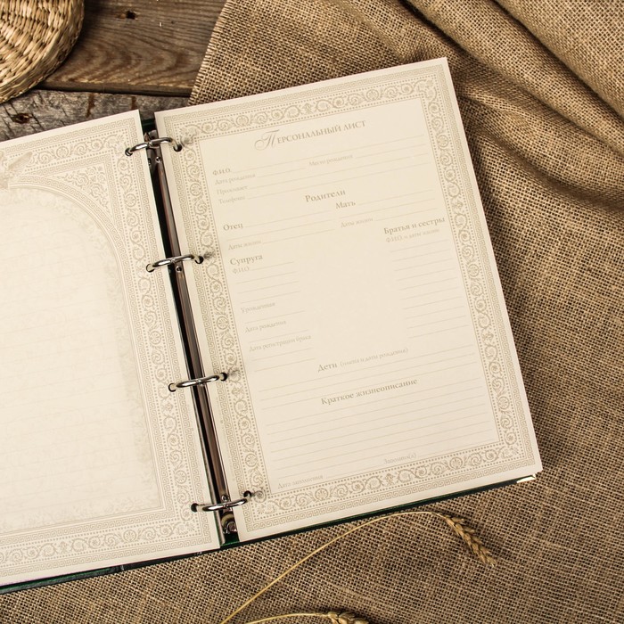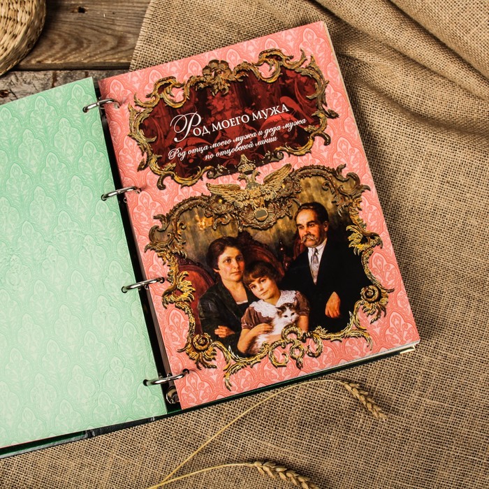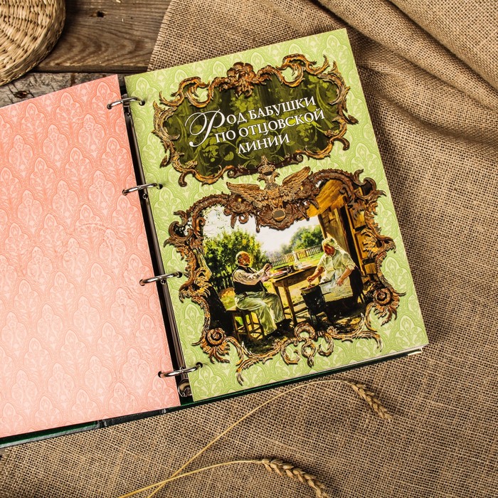 Родословная книга "Праздничная" зеленая, 25,5х31,5х7 см, 108 листов, эко/кожа