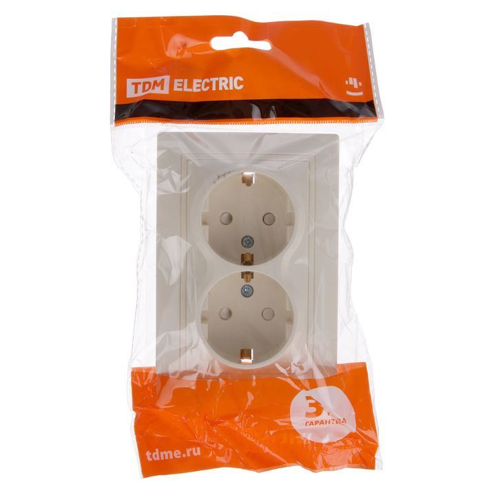 Розетка TDM "Таймыр" 2П+З, 16 А, 250 В, двухместная, цвет слон. кость, SQ1814-0118