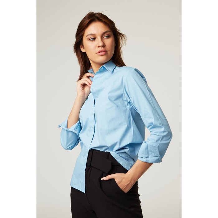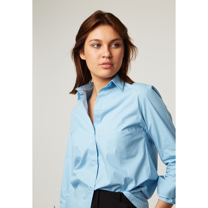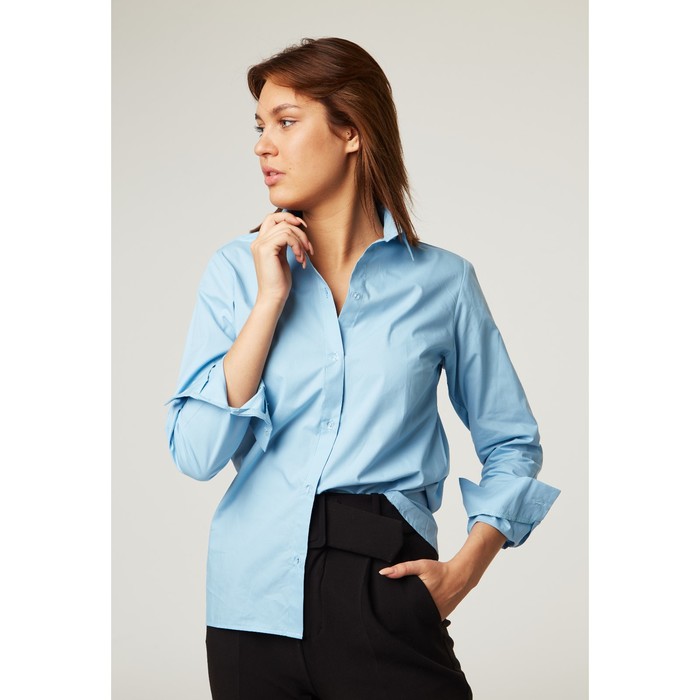 Рубашка женская трапеция, размер 54-56, голубой, хлопок 100%