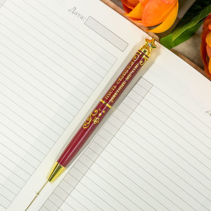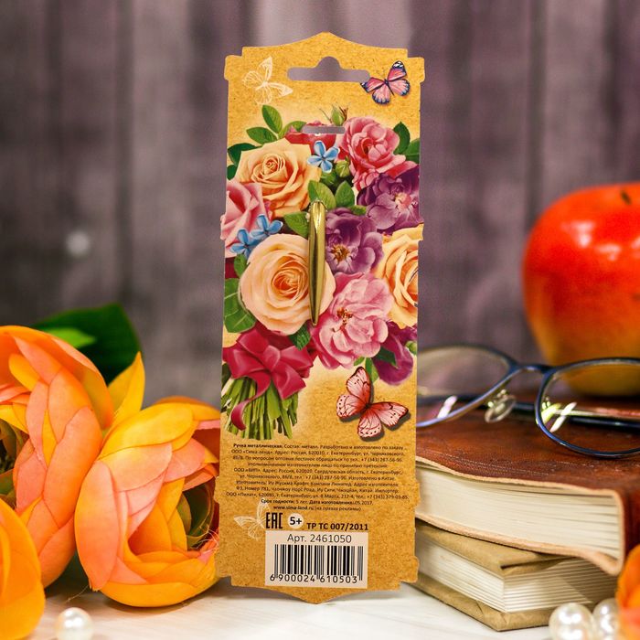 Подарочная металлическая ручка отличается оригинальным оформлением. Сувенир представлен на авторской подложке-открытке с поздравлением.