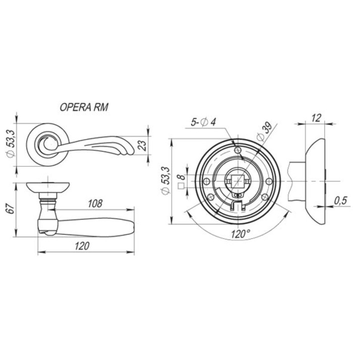Ручка раздельная Fuaro OPERA RM SN/CP-3, цвет матовый хром/хром