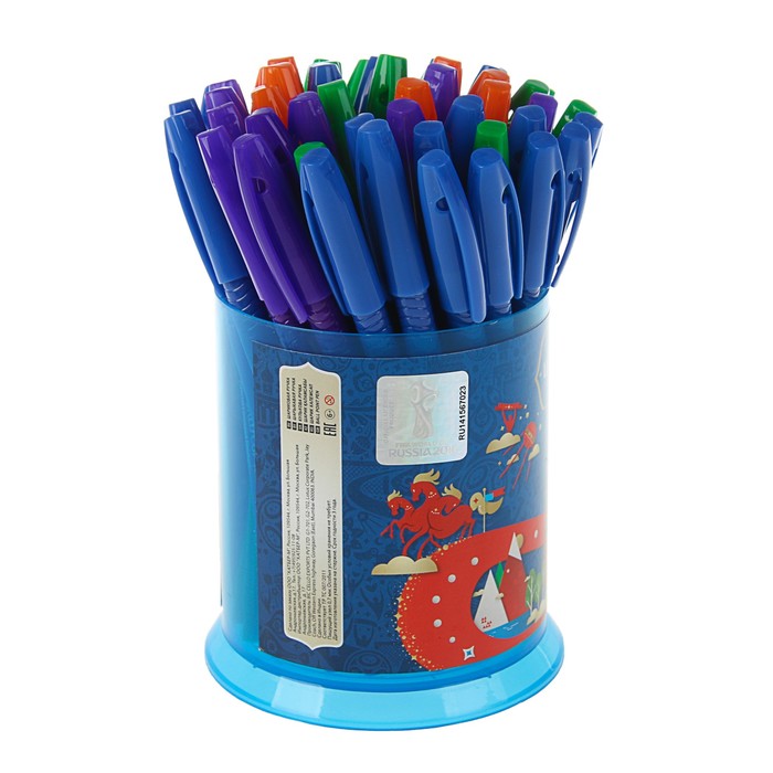 Ручка шариковая 0.7 мм «ЧМ по футболу 2018», набор 50 шт. в пластиковом стакане, микс