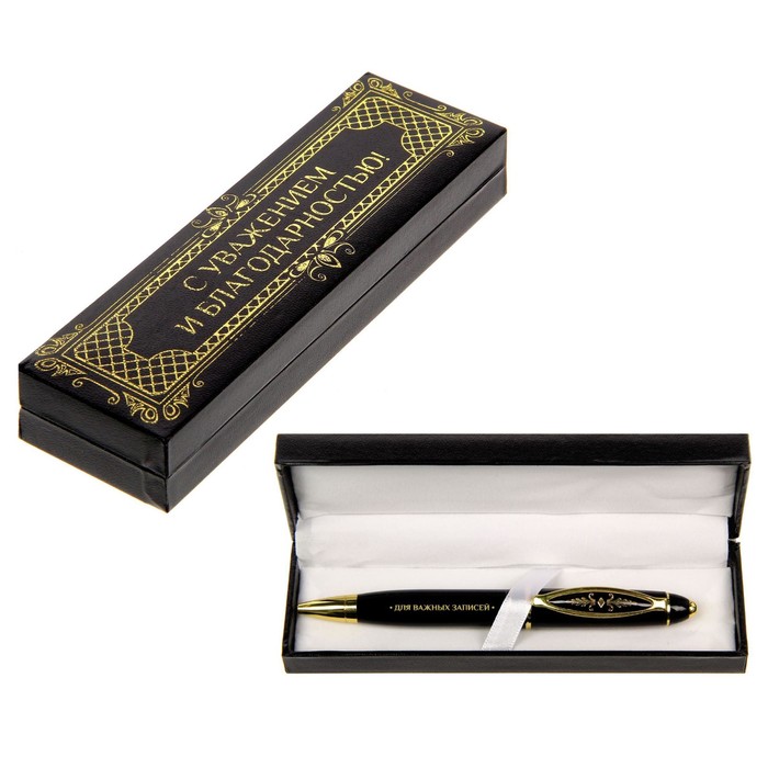 Ручка в подарочном футляре из экокожи "С уважением и благодарностью"