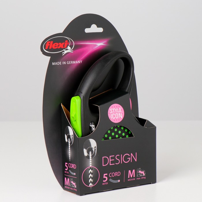 Рулетка Flexi Design М (до 20 кг) 5 м трос, черный/зеленый горох