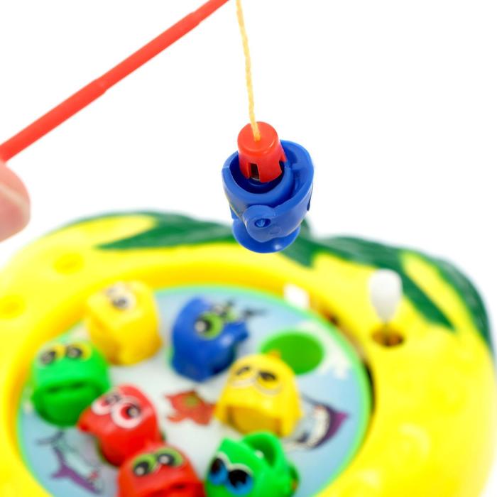 Рыбалка — увлекательное развлечение, которое понравится малышам. Рыбалка "Фрукты", 8 рыбок+2 удочки, заводная, МИКС разнообразит досуг и добавит веселья в детские игры.