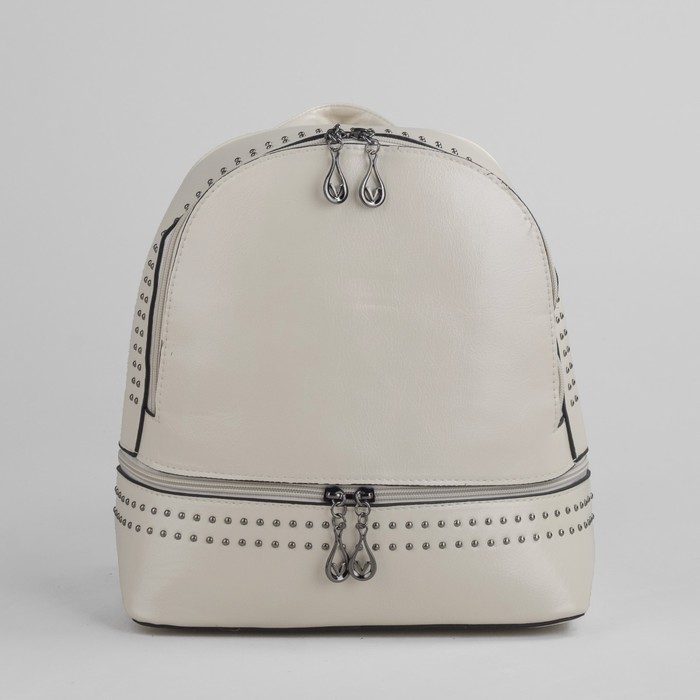 Рюкзак молодёжный, 2 отдела на молнии, 2 наружных кармана, цвет молочный