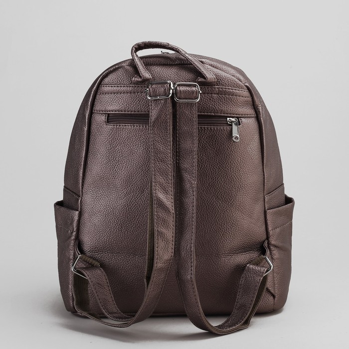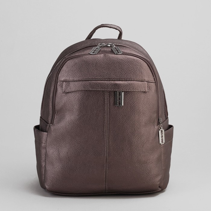 Рюкзак молодёжный, 2 отдела на молниях, 4 наружных кармана, цвет бронзовый