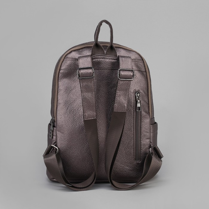 Рюкзак молодёжный, 2 отдела на молниях, 4 наружных кармана, цвет бронзовый