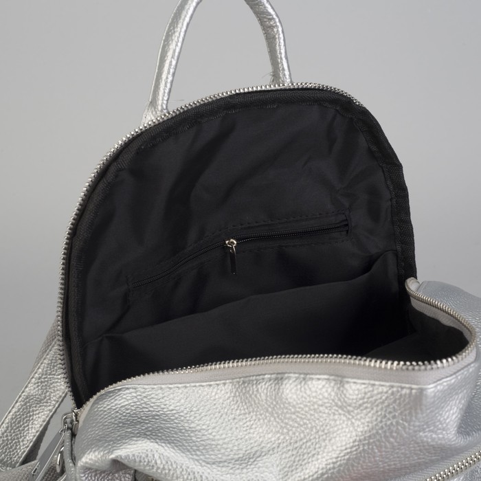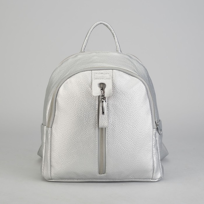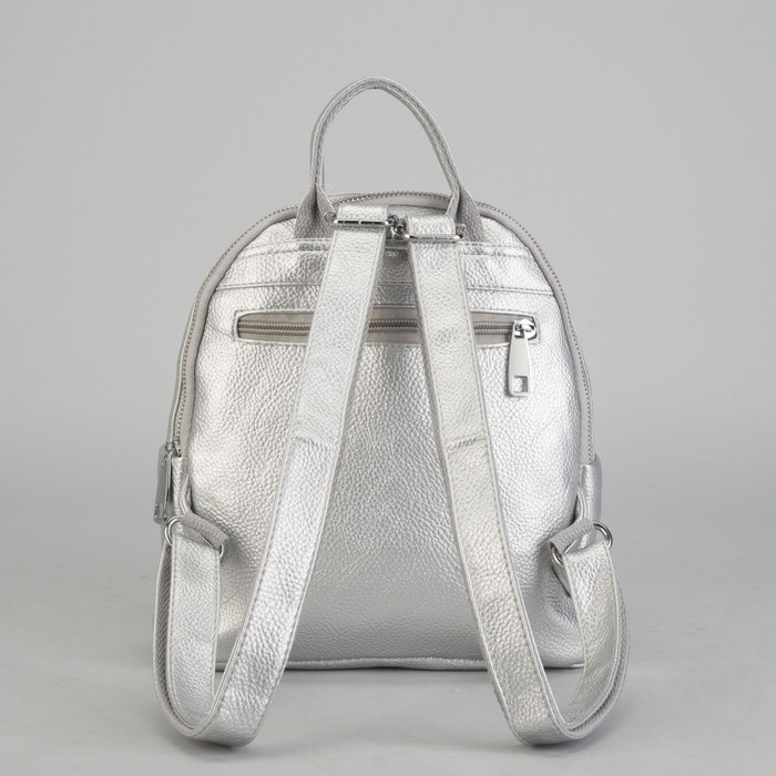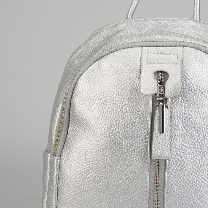 Рюкзак молодёжный, 2 отдела на молниях, 4 наружных кармана, цвет серебристый