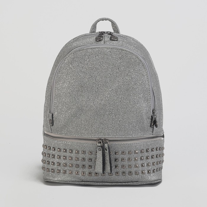 Рюкзак молодёжный, 2 отдела на молниях, наружный карман, цвет серебристый
