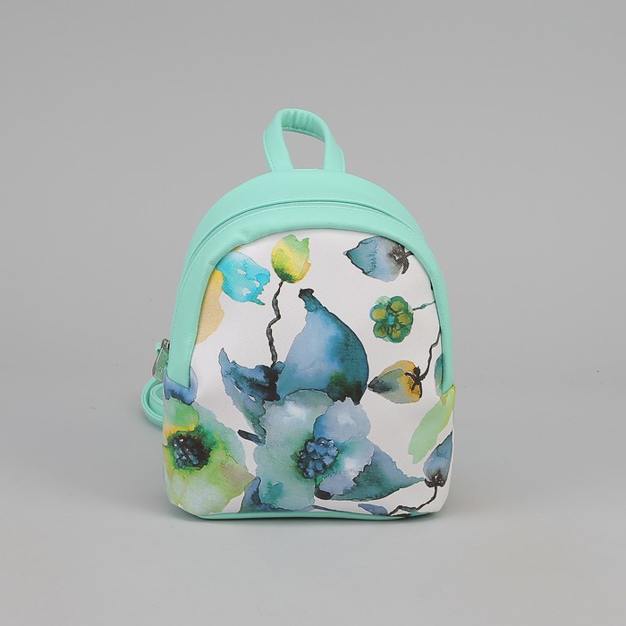 Рюкзак молодёжный "Цветы", отдел на молнии, наружный карман, цвет бирюзовый/голубой