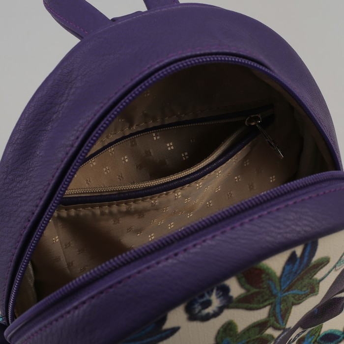 Рюкзак молодёжный "Цветы", отдел на молнии, наружный карман, цвет фиолетовый